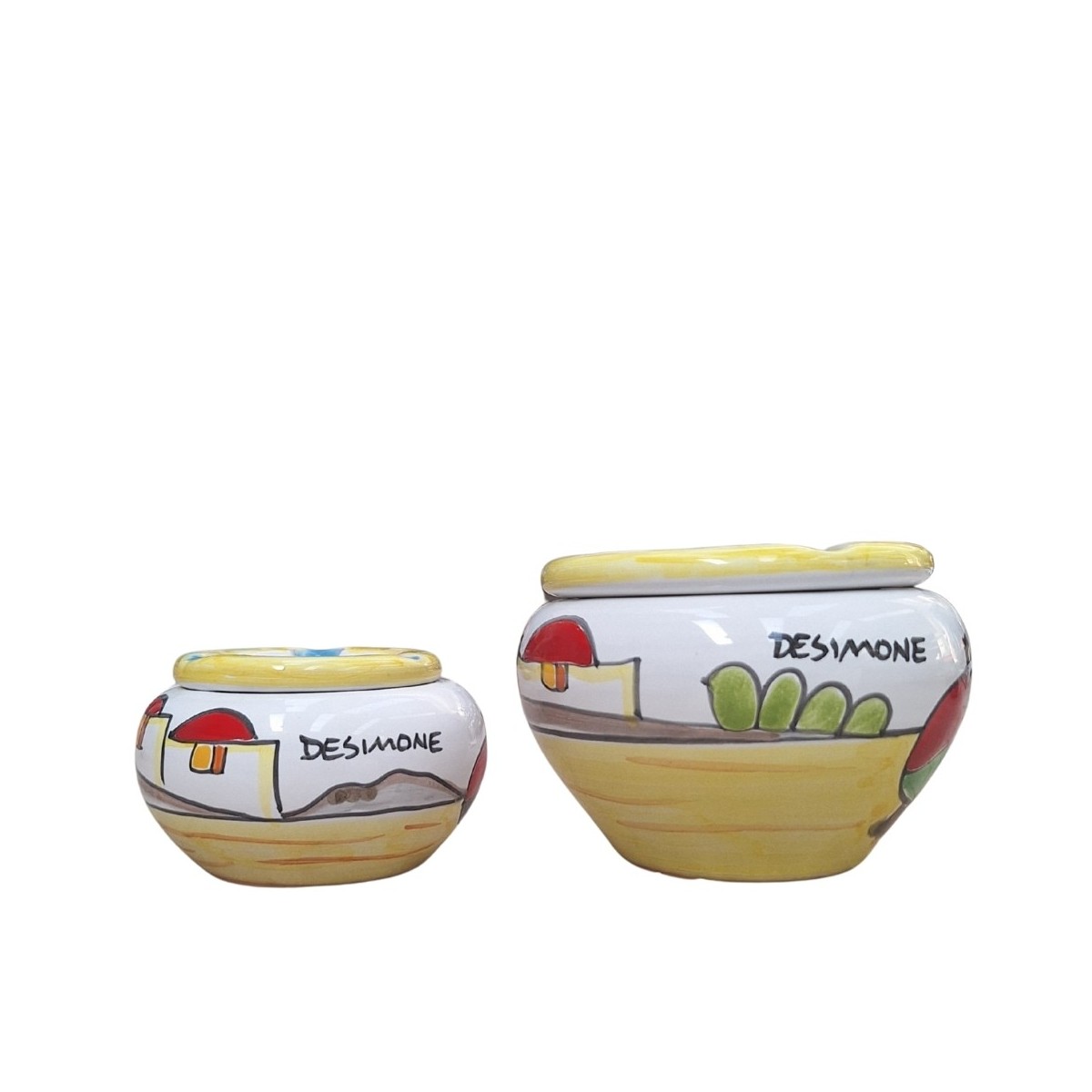 The ashtrays Ceramiche De Simone are made of ceramic and painted entirely by hand by our master craftsmen; the fantasies reproduced are inspired by the landscapes and culture that characterize Sicily, with bright colors and original patterns, typical of the Mangiallegro Line. Every break, therefore, is tinged with a folkloristic and cheerful atmosphere, to be shared with the dearest people.