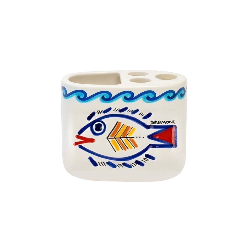 Toothbrush Holder handcrafted in ceramic with Levante fantasy hand painted by our artists.