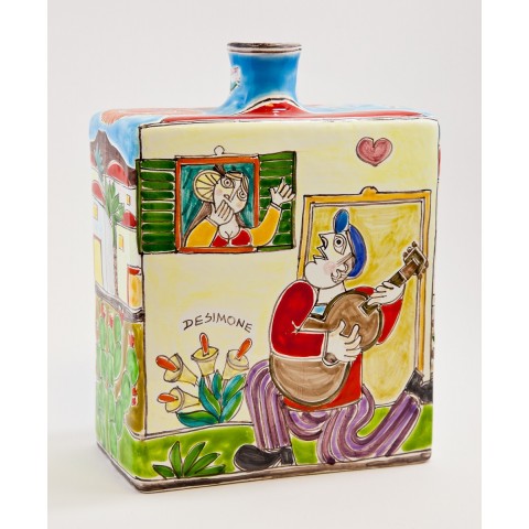 Handmade and hand-painted ceramic bottle from the DS line. Height of 24 cm.