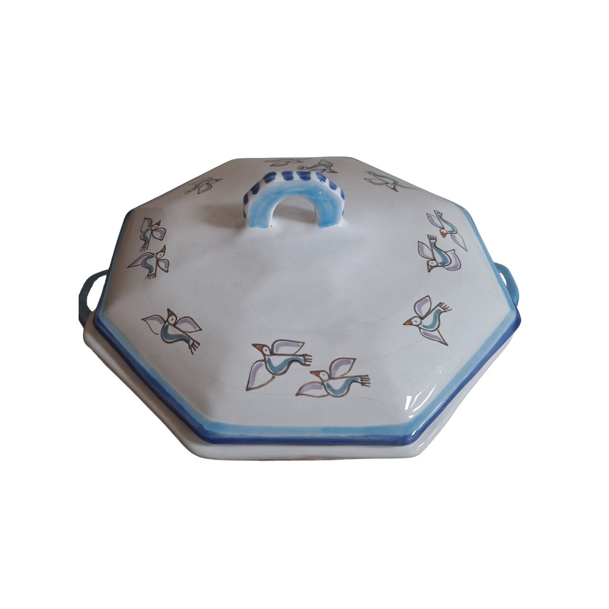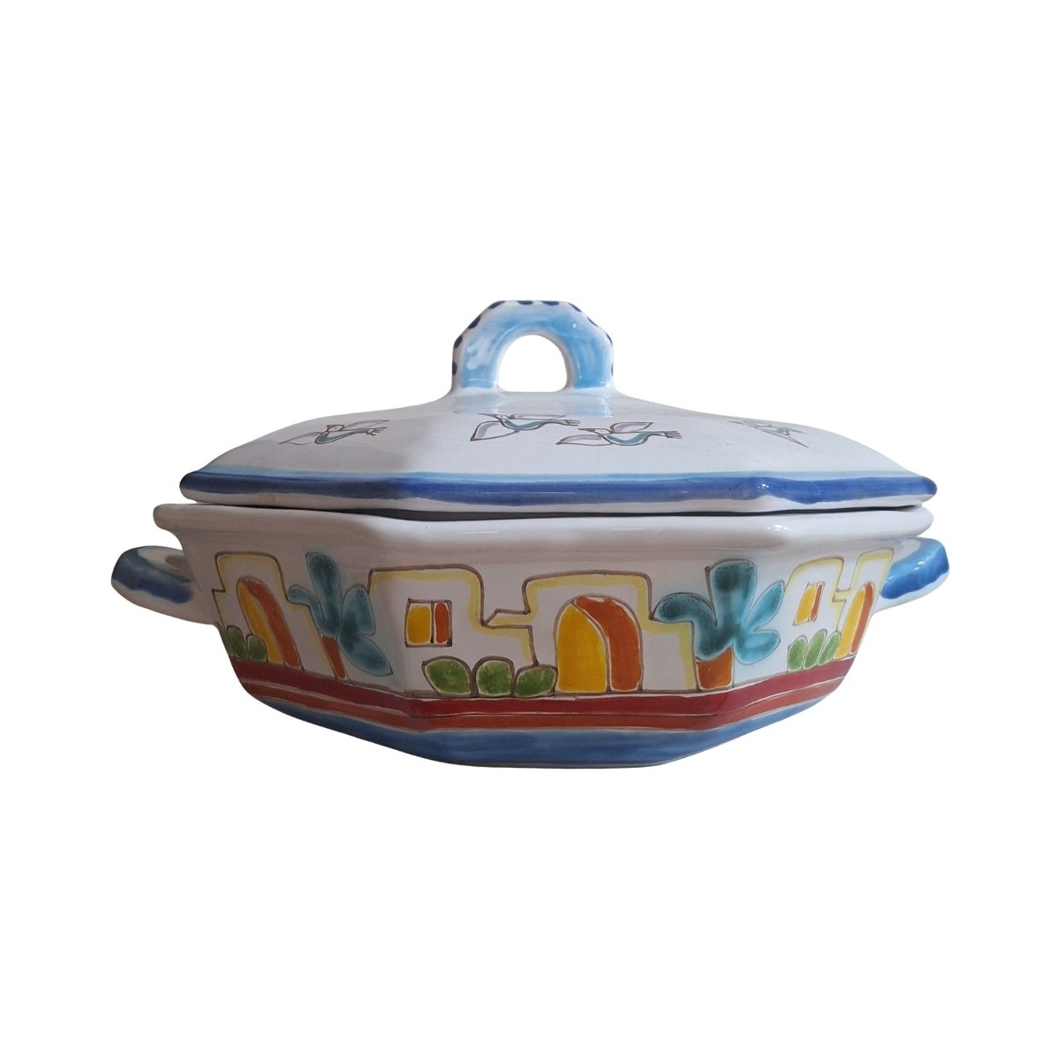 Octagonal ceramic soup tureen handmade and hand painted Dammusi of Mangiallegro Line