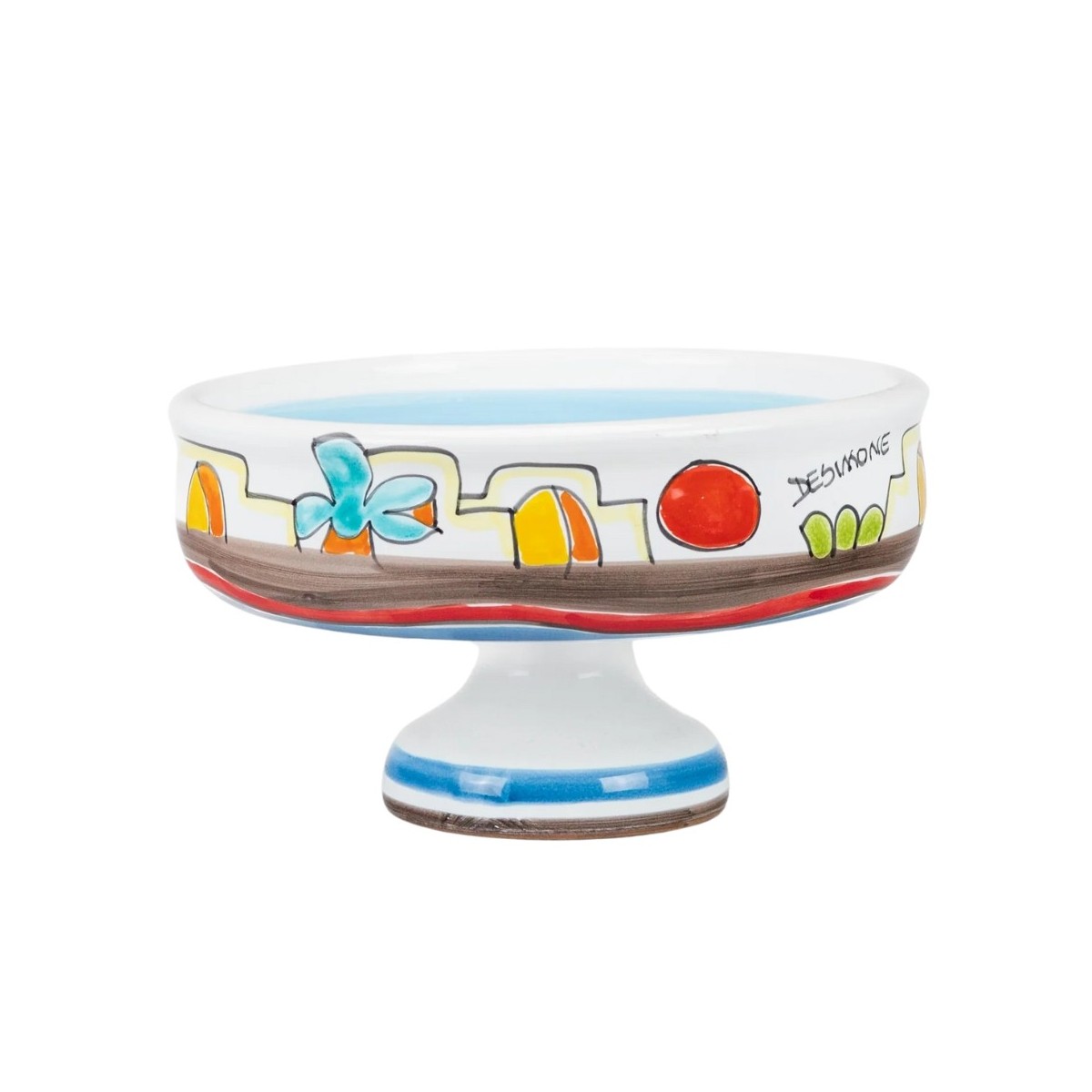 Handmade and hand-painted ceramic stand from the Mangiallegro line, Dammusi collection. Also ideal as a centerpiece, it is available in four sizes: 13 cm, 15 cm, 23 cm, and 30 cm.