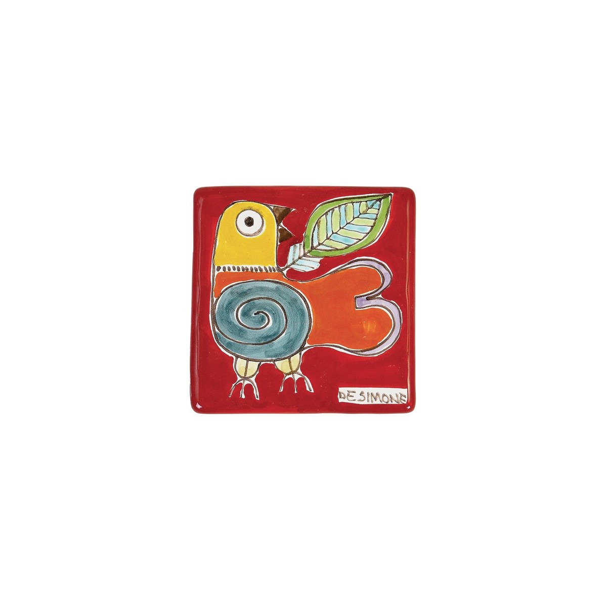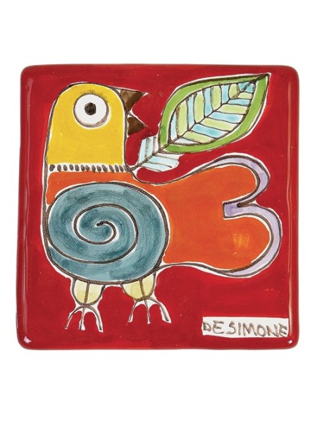 Wall tile in ceramic realized by hand and painted with fantasy "Bird", Folk line.