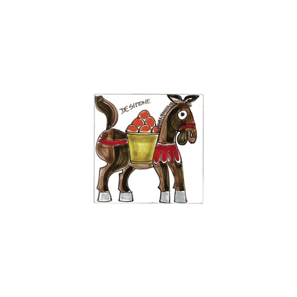 Hand-painted ceramic wall tiles with Donkey pattern, Folk line.