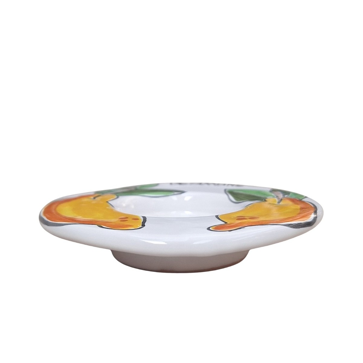 Tealight holder in ceramic, entirely handmade by our artisans. Its wide, flat round shape is perfect for holding a tealight and enhancing your table on any occasion, from a relaxed family lunch to a special dinner. The rim is decorated with large, bright yellow lemons outlined in black and enriched with vivid green leaves: an uplifting Mediterranean design, the result of the manual work of craftsmen and artists, that turns this tealight holder into a lively yet refined detail for any room in the house.