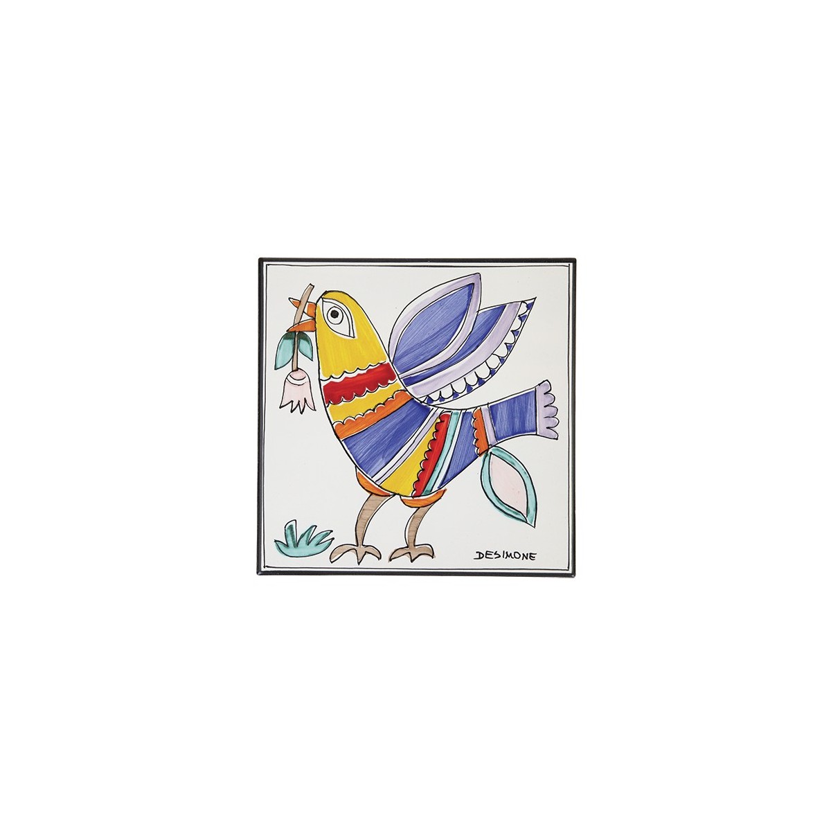 Hand-painted ceramic tile Bird with flower of the Folk Line