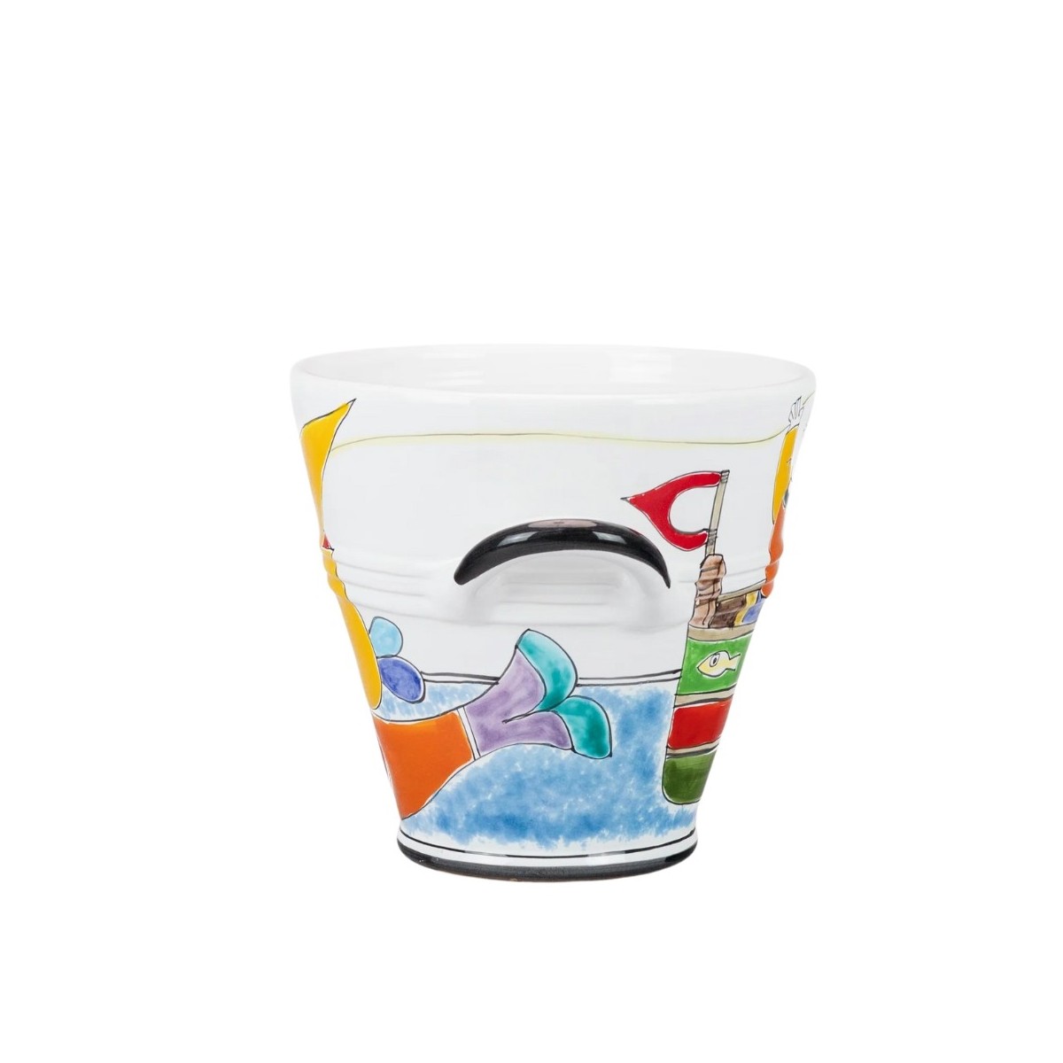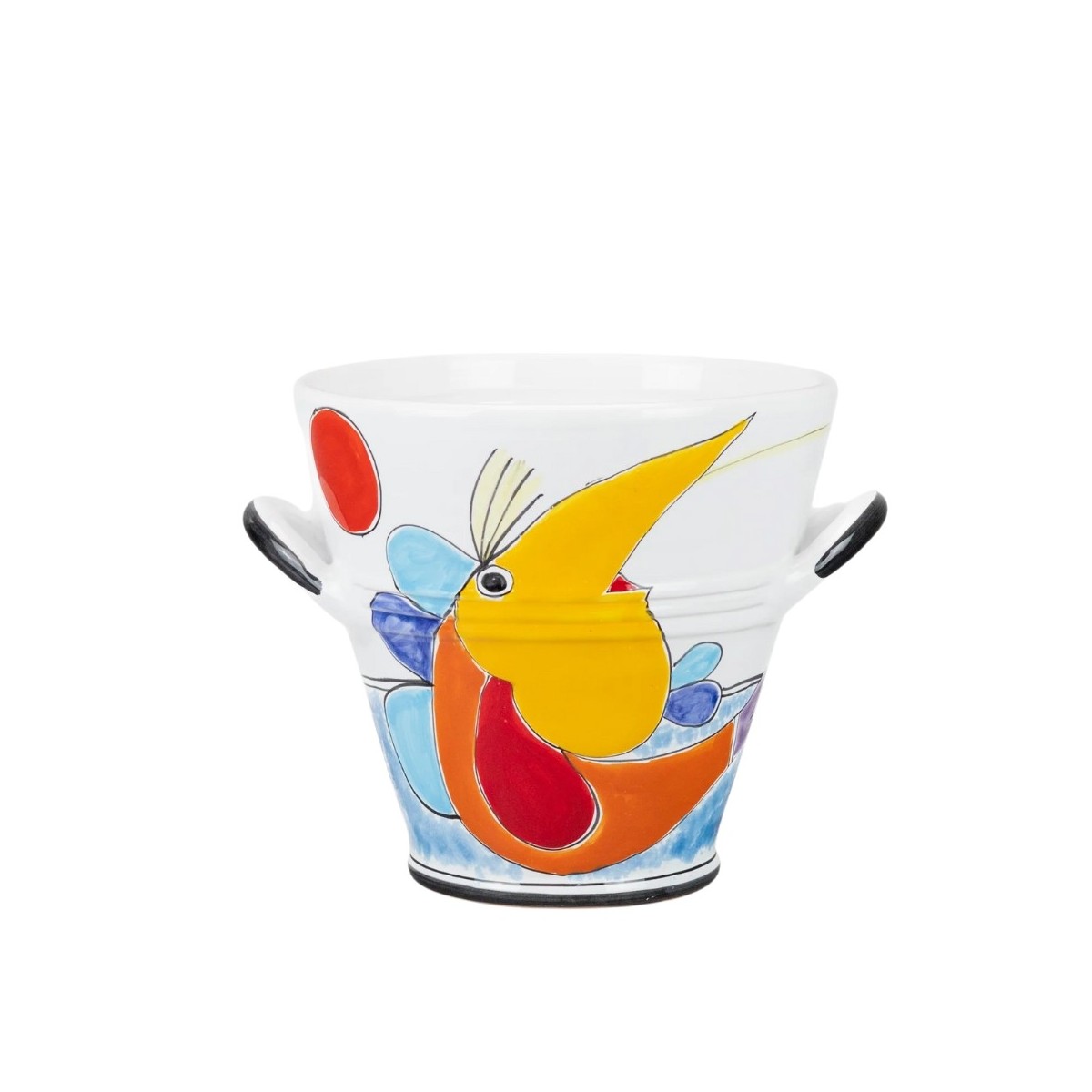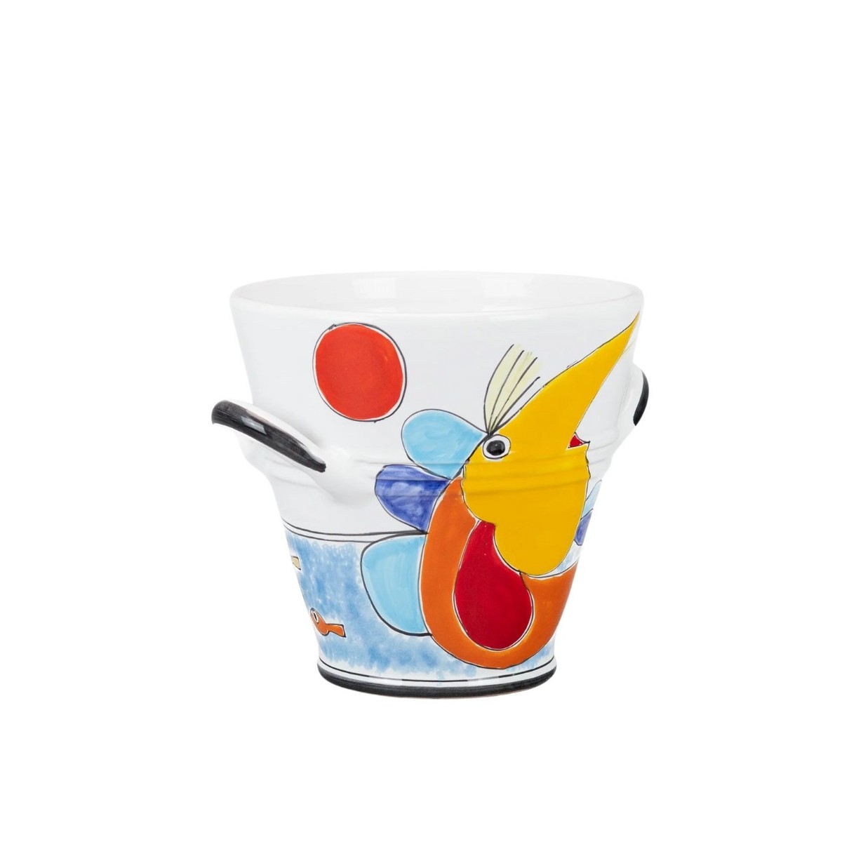 Ice bucket handcrafted in ceramic and decorated by hand, Folk line.