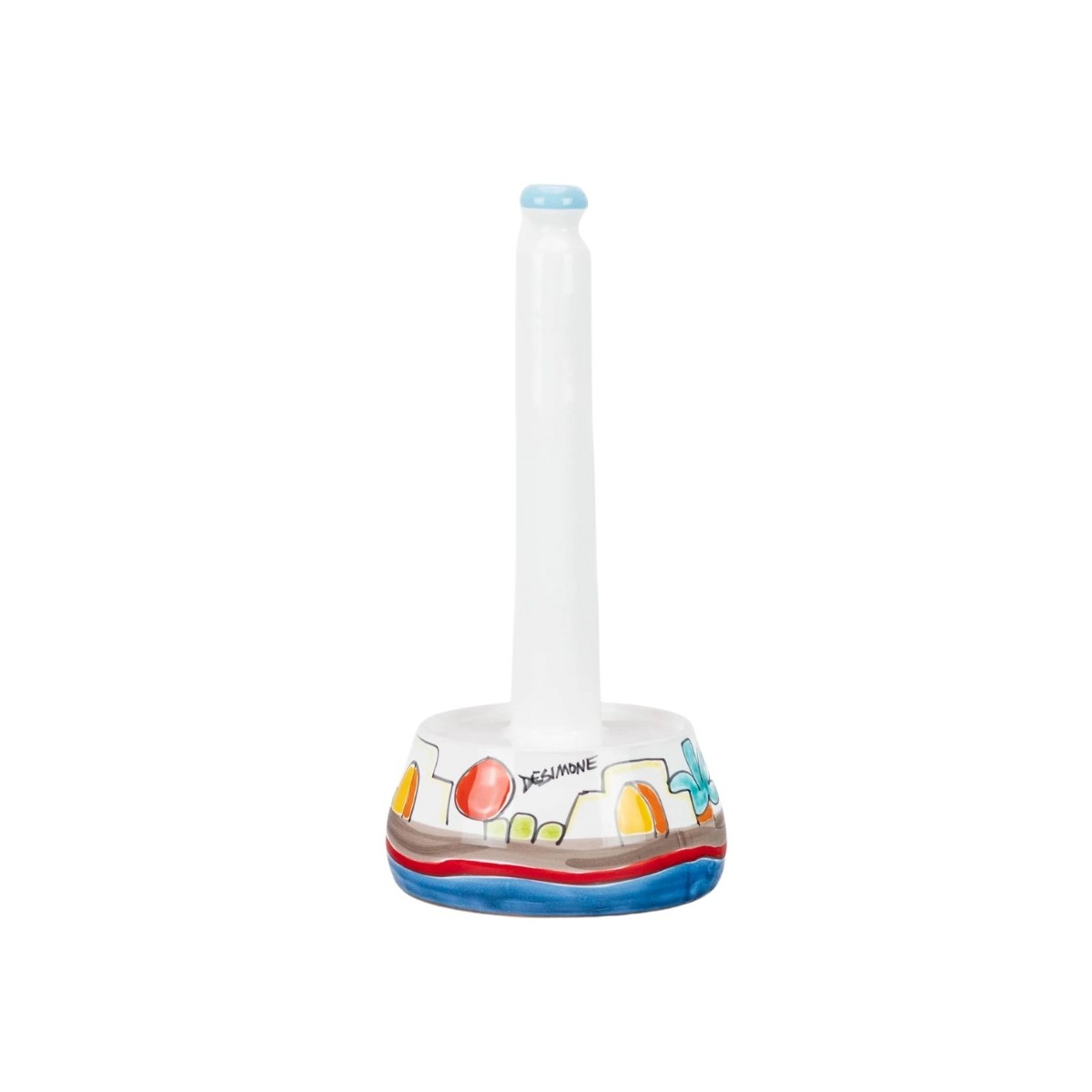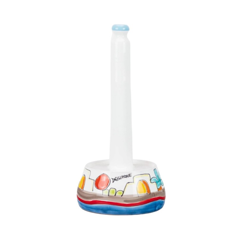 Stand-up paper roll holder with base hand-decorated with the Dammusi pattern from the Mangiallegro line.