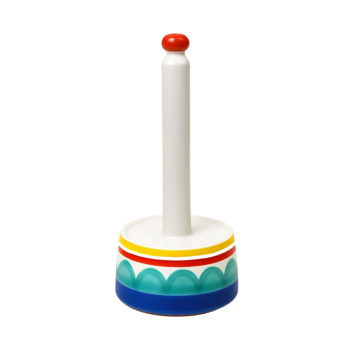 Stand-up paper roll holder with base hand-decorated with the Alicudi pattern from the Mangiallegro line.