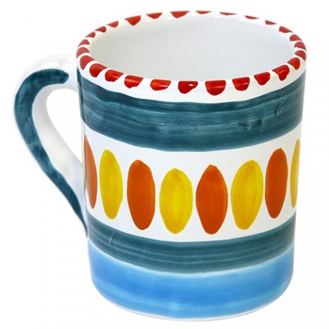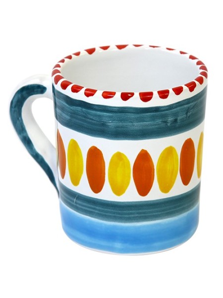 Ceramic mug handmade and decorated with Solunto pattern, from the Mangiallegro line. Ideal for tea, cappuccino, milk, and other breakfast beverages.
