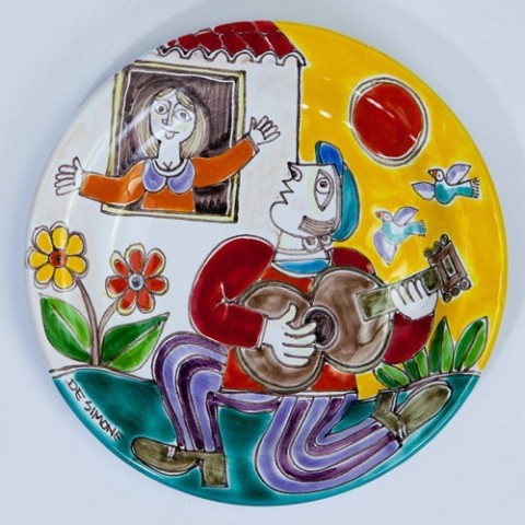 Decorative ceramic plate, handmade and hand-painted by our artists, from the DS line. Thanks to the hole on the back you can also decide to fix it to the wall and decorate the walls of your home.
