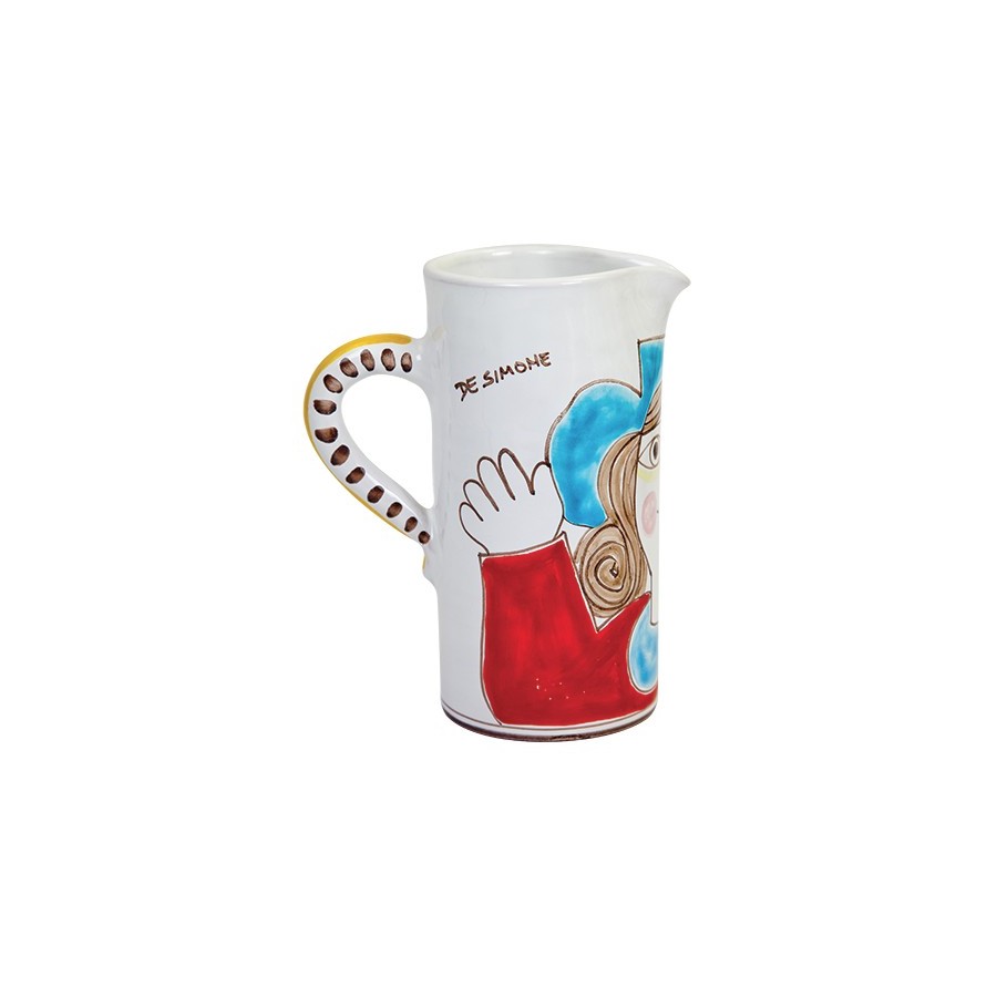 White clay pitcher made entirely by hand by our craftsmen. Ideal not only to serve drinks as a classic carafe, but also to store on a surface as a container (eg. for cutlery in the kitchen) or ornament in the kitchen and other rooms of the house. The fantasy portrayed is the result of the work of our artists who have decorated it by hand, which makes it a unique and exclusive piece like every De Simone creation.Â