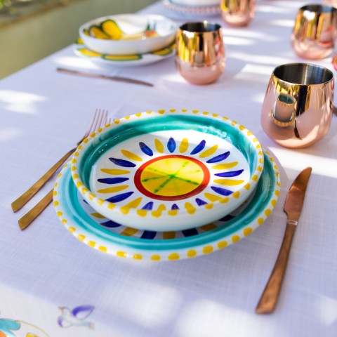 Belonging to the Mangiallegro line, the Lipari artisan dish service is characterized by bright colors that give joy to any table, kitchen and environment in general. You can also combine it with other products: you can find them below or by searching for the name of the decoration Lipari.