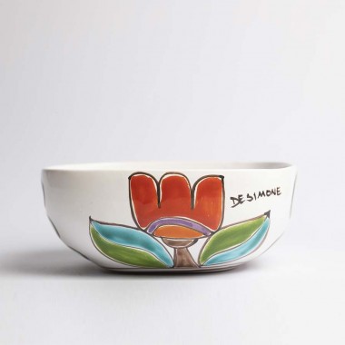 Salad bowl of the line Folk made entirely by hand by our craftsmen with Daisy & Tulip Flowers fantasy.