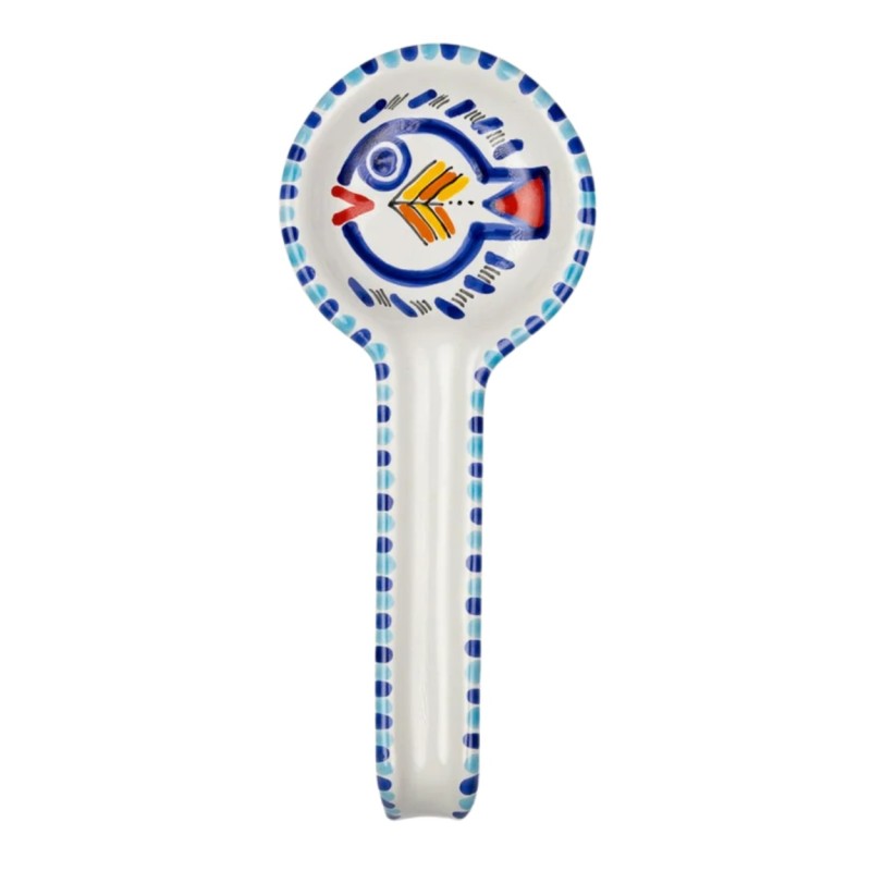 Levante Ceramic spoon rest of the Mangiallegro line entirely handmade by our craftsmen. Ideal to keep in the kitchen or on the table, is an accessory that is always useful to have at hand a small space where to rest the utensils that are used during the preparation of dishes or when they are served.