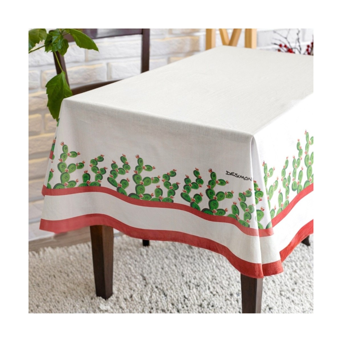 Square polycotton tablecloth Prickly Pear 155 x 155 cm Folk line