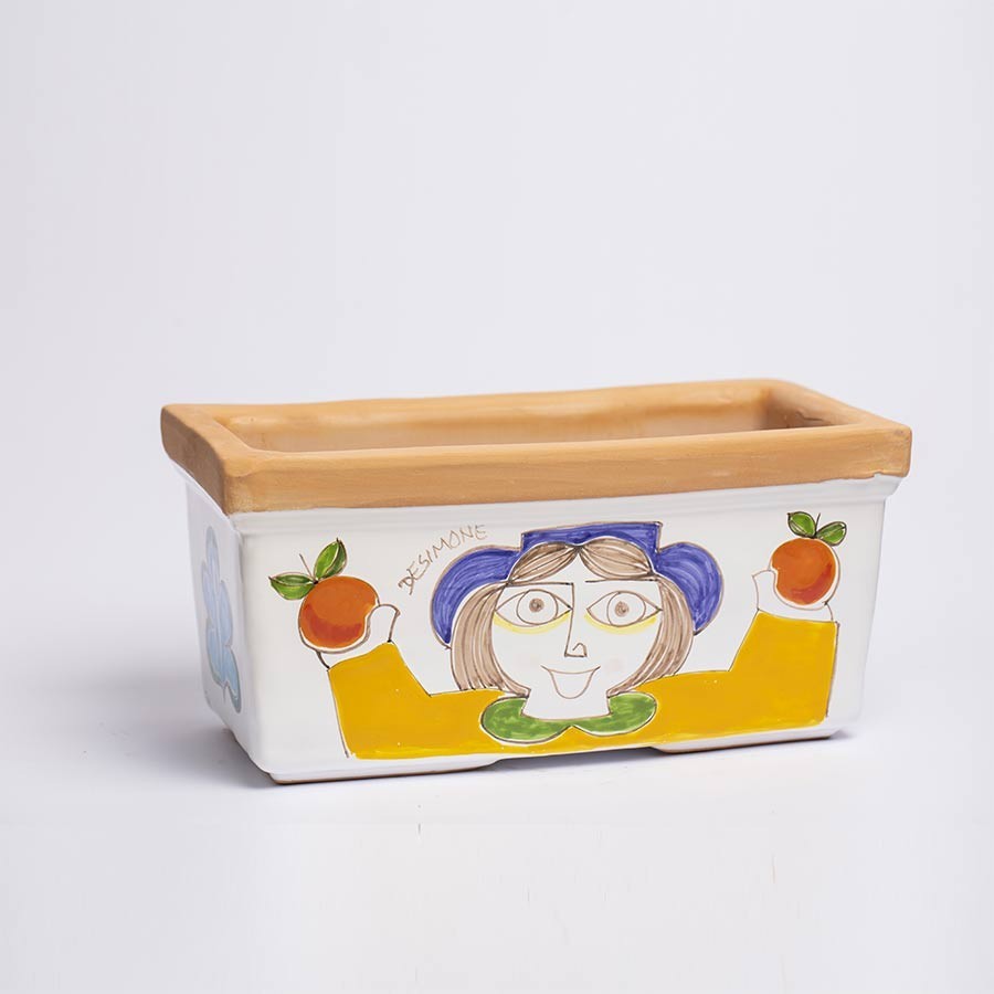 Handmade and hand-painted rectangular ceramic vase from the Folk line. Available in different sizes.