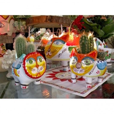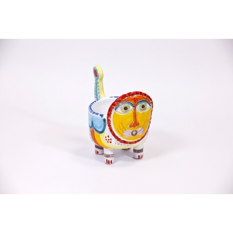 Handcrafted and hand-painted ceramic plant pot in the shape of a lion with "Animals" pattern, Folk line. Available in 3 sizes: 8 cm, 12 cm and 18 cm.