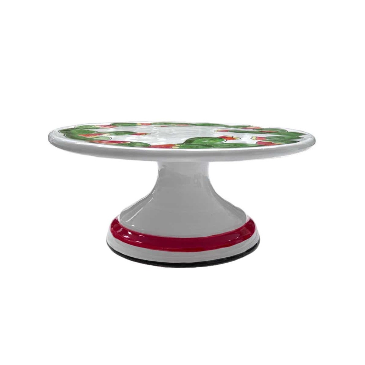 Alzata piana in ceramica decorata a mano fantasia Fichi d'India della linea Folk