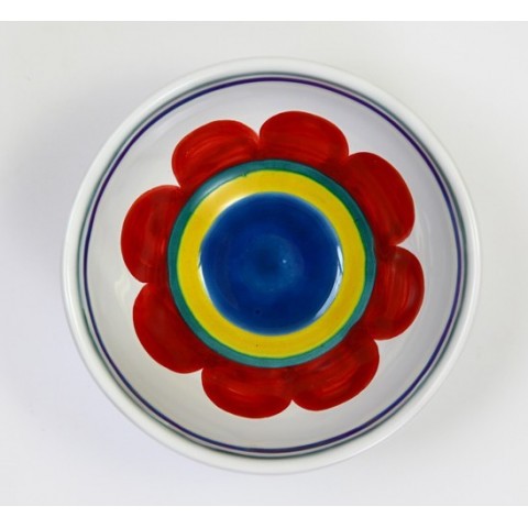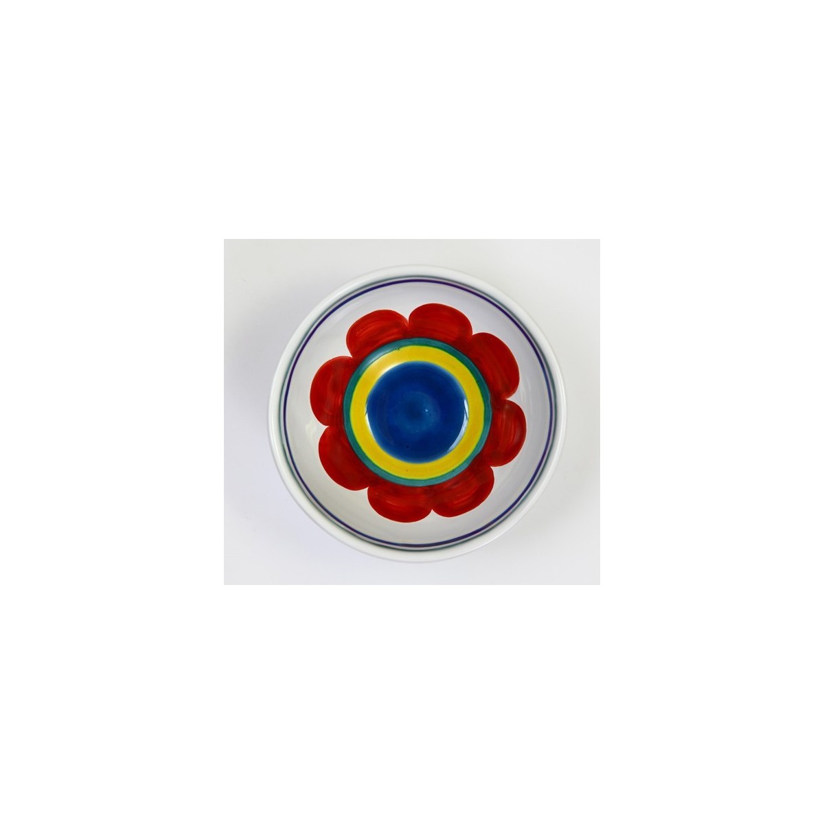 Antipastiera tonda in ceramica realizzata e dipinta a mano con fantasia Sibari, linea Mangiallegro. Disponibile in due misure: 14 cm, 20 cm.