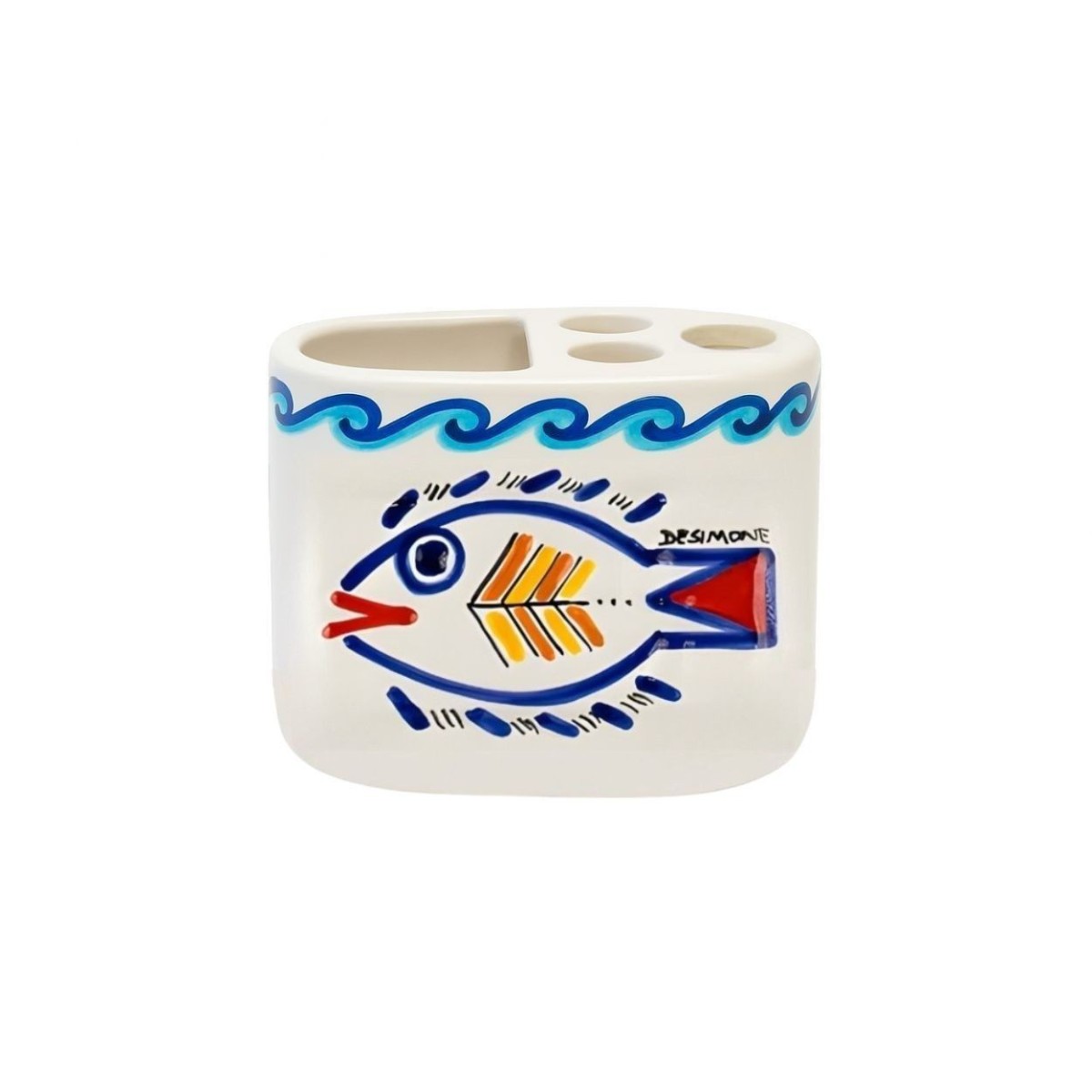 Dispenser in ceramica per spazzolini e dentrificio decorato a mano fantasia Levante della linea Mangiallegro