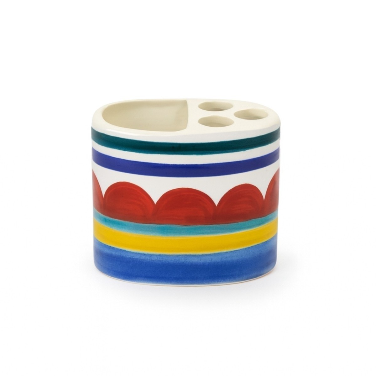 Dispenser in ceramica per spazzolini e dentrificio decorato a mano fantasia Sibari della linea Mangiallegro