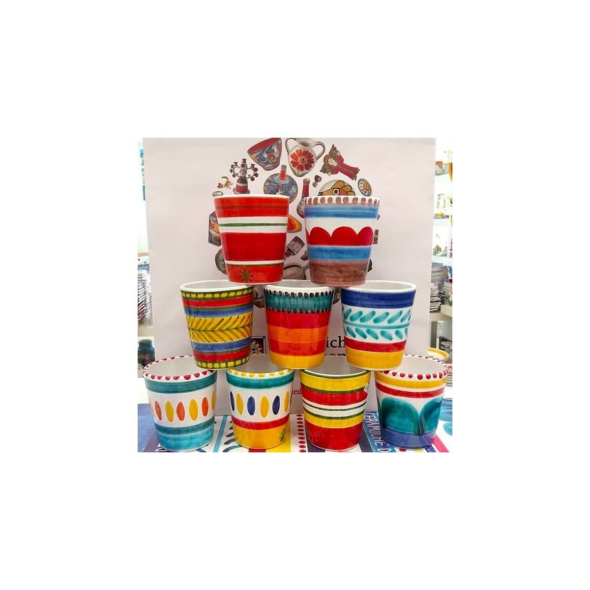 Bicchiere in ceramica realizzato e dipinto a mano con fantasia Lampedusa, linea Mangiallegro.