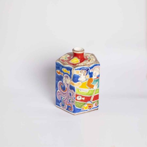 Bottiglia in ceramica, realizzata e dipinta a mano, della linea DS. Disponibile in tre altezze: 17 cm, 24 cm, 32 cm.