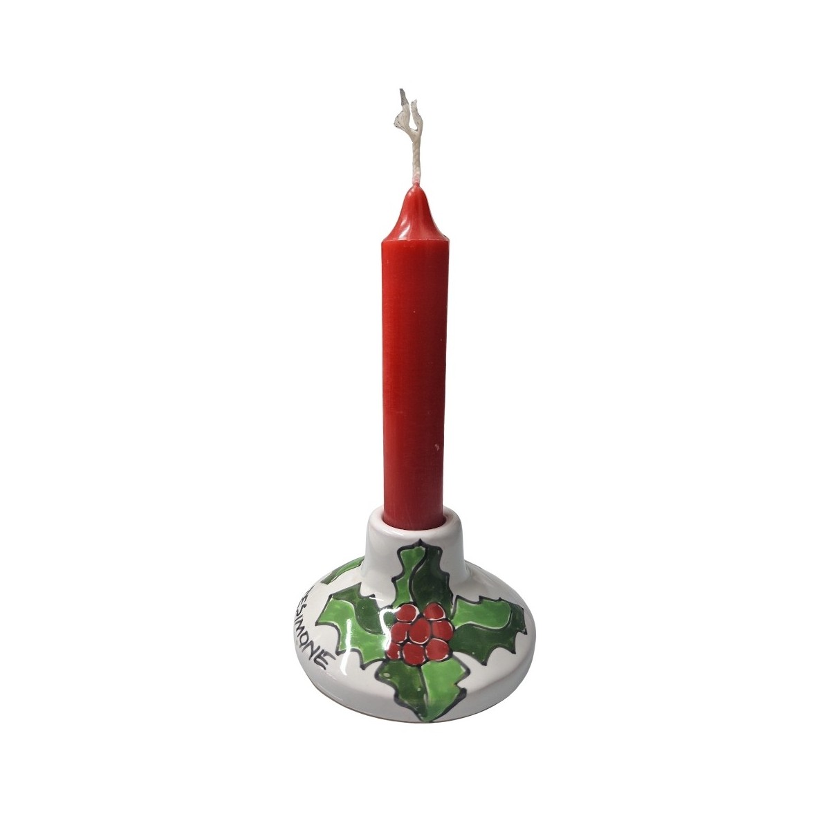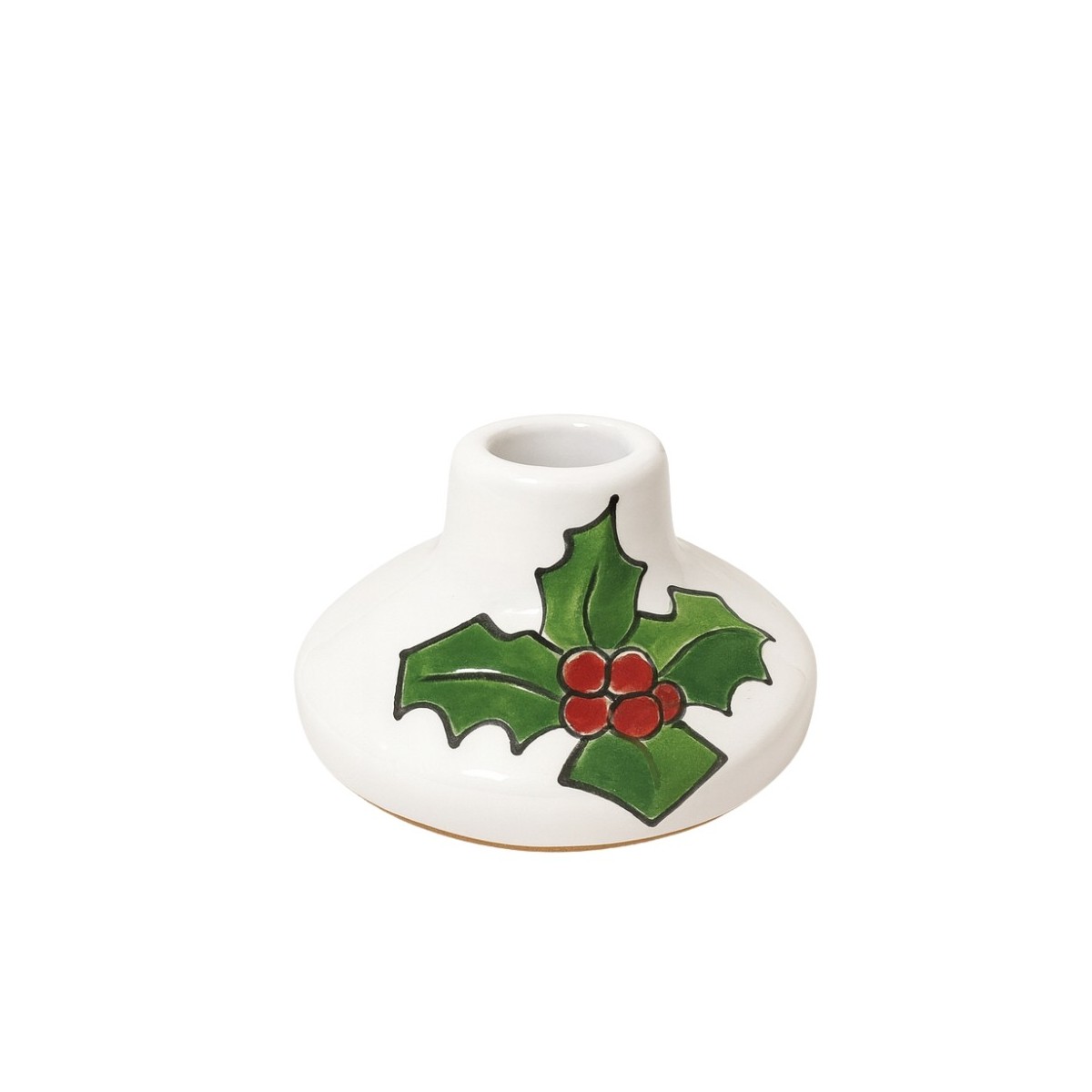 Portacandela in ceramica decorato a mano Folk Agrifoglio