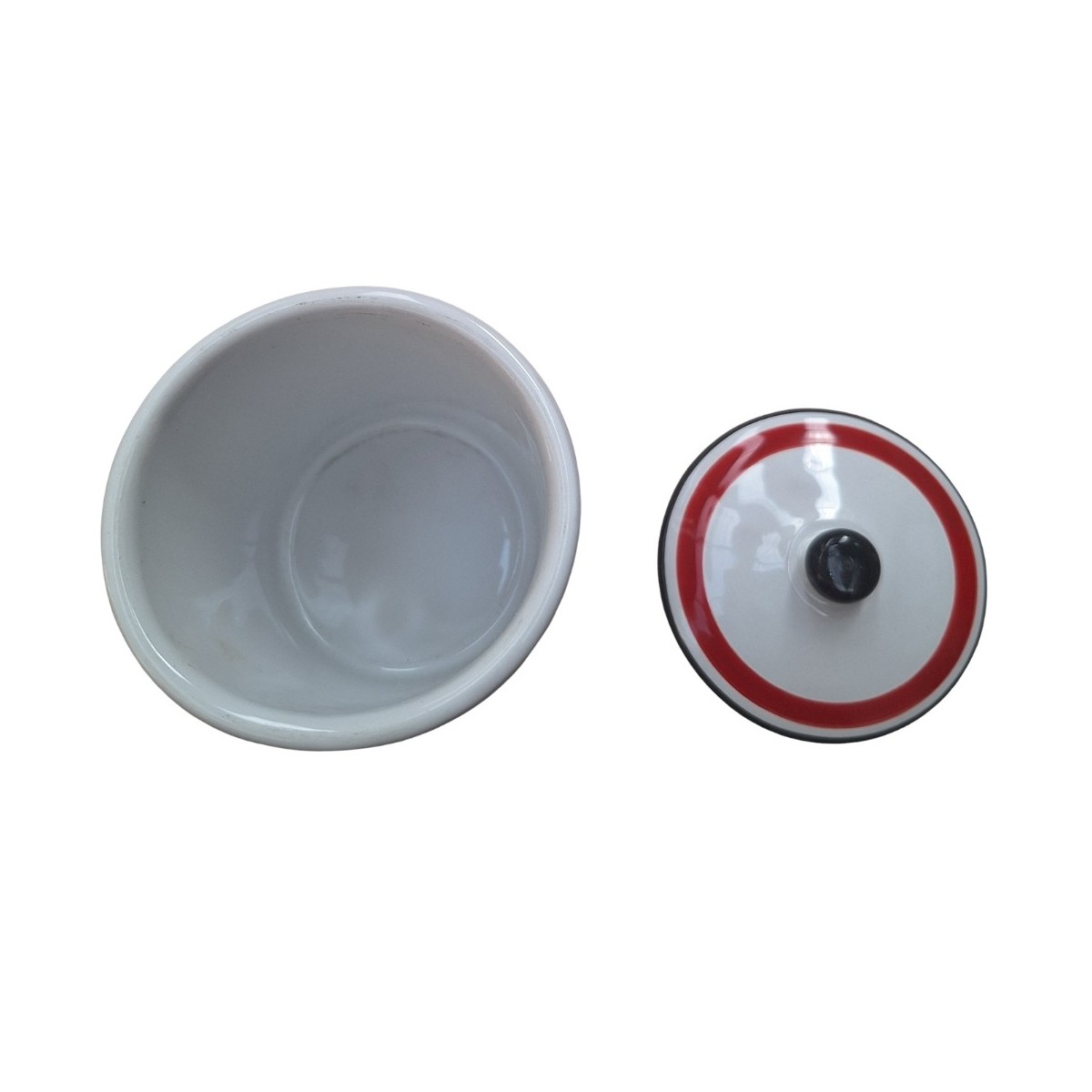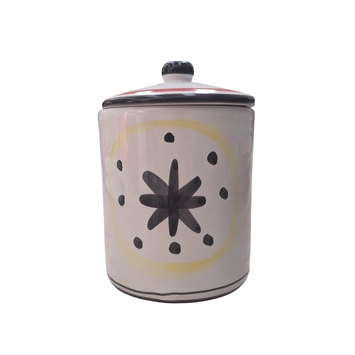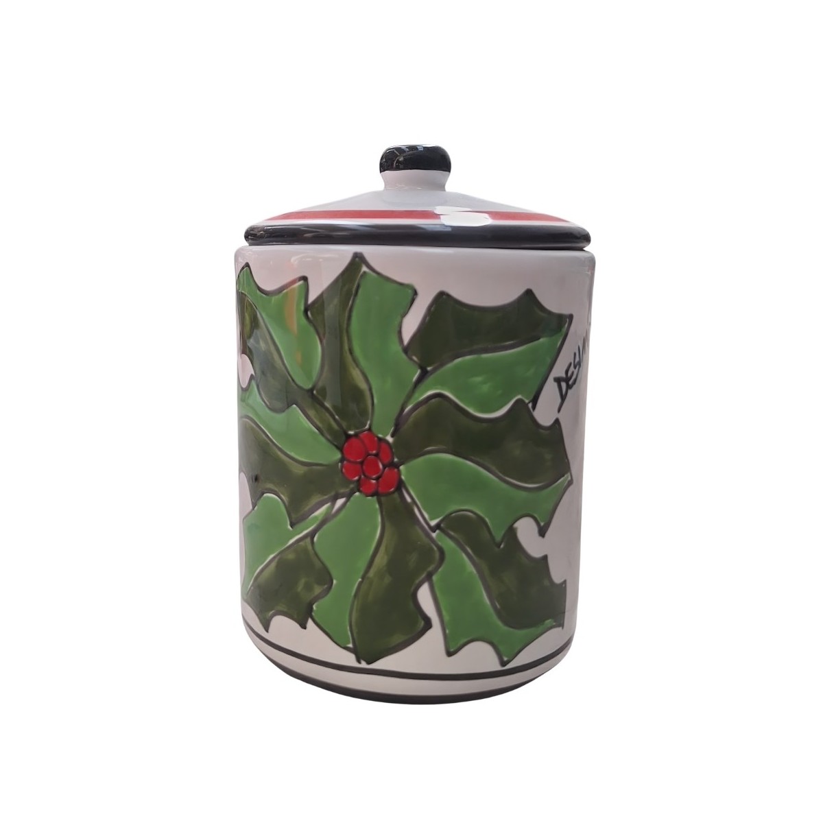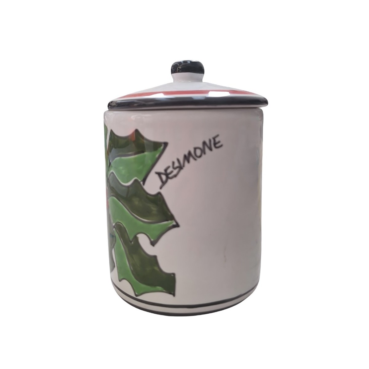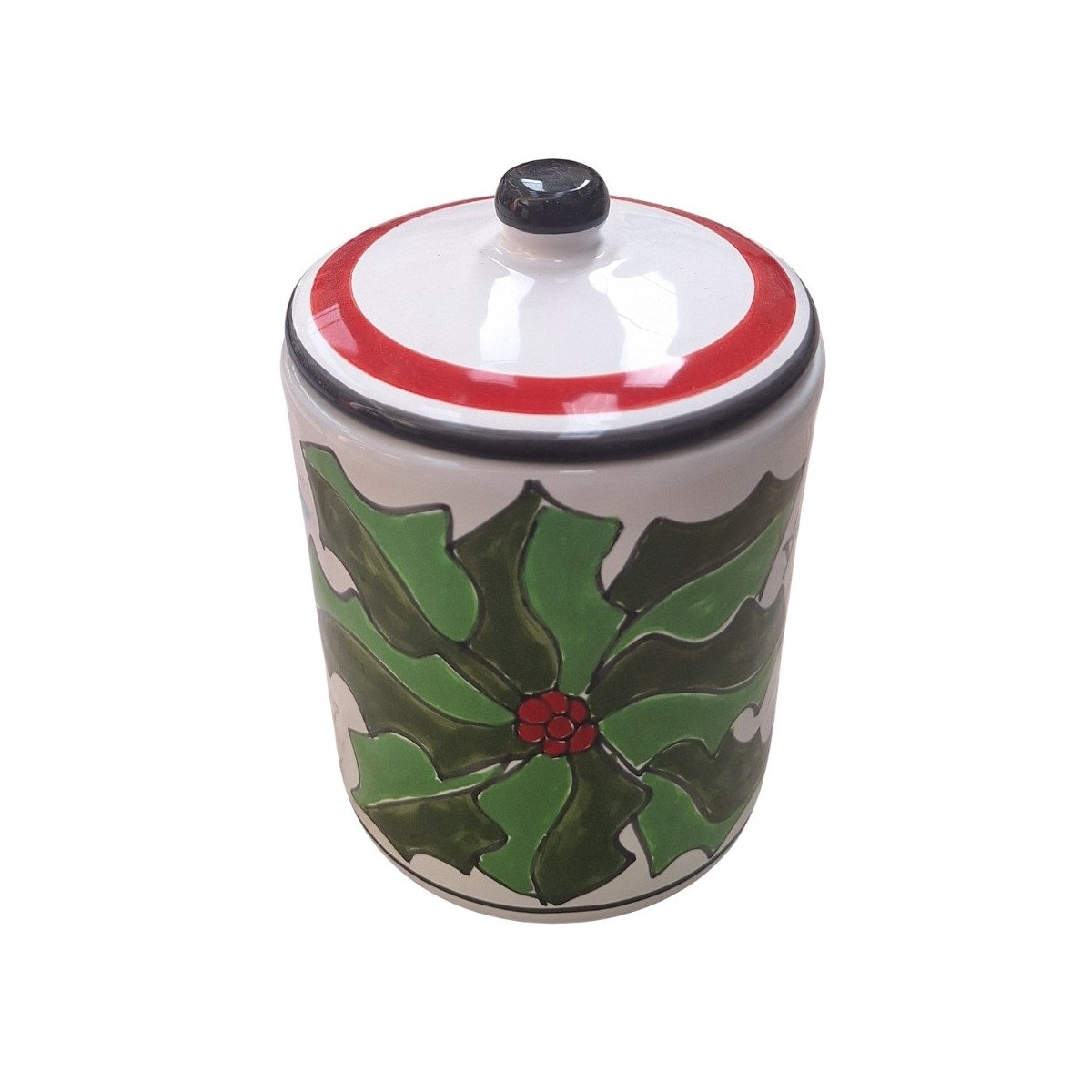 Contenitore con coperchio realizzato a mano, linea Mangiallegro, fantasia agrifoglio. Capacità 150 ml e 400 ml.