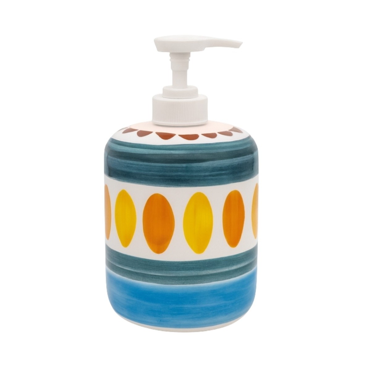 Dispenser sapone in ceramica decorato a mano fantasia Lipari della linea Mangiallegro
