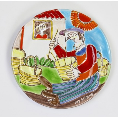 Piatto decorativo in ceramica, realizzato artigianalmente e dipinto a mano dai nostri artisti, della linea DS. Grazie al foro sul retro potrai anche decidere di fissarlo al muro e ornare le pareti di casa.