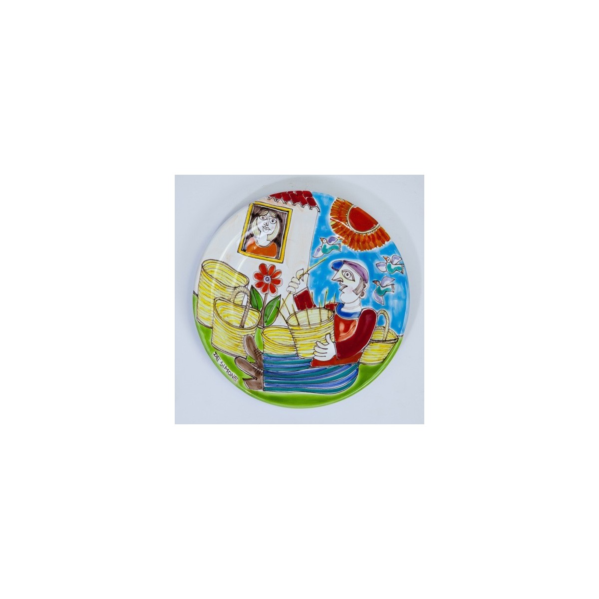 Piatto decorativo artigianale realizzato in ceramica e interamente dipinto a mano Canestraio