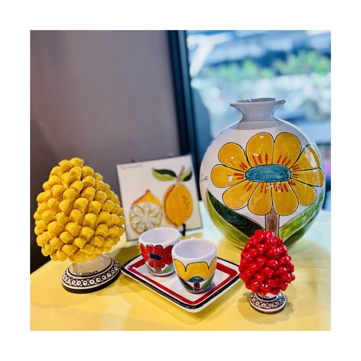 Cachepot pigna con piede vaso siciliano colorato artigianale Ceramiche De Simone