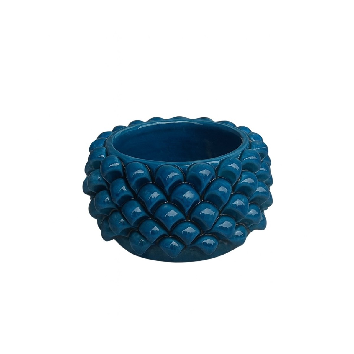 Vaso tondo a forma di mezza pigna in ceramica realizzato artigianalmente e dipinto a mano. Disponibile in varie misure/colori.