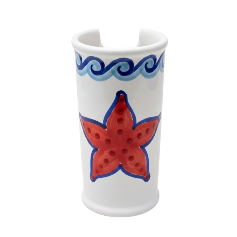 Porta bicchieri in ceramica decorato a mano fantasia Maestrale della linea Mangiallegro