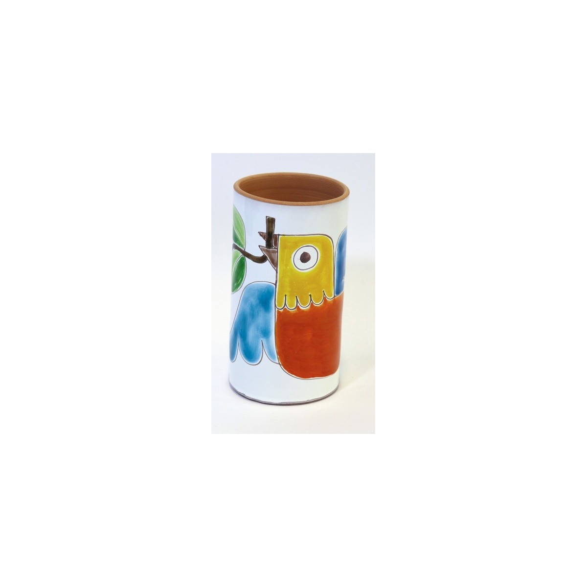 Portabottiglie o portautensili in ceramica decorata a mano Uccello con fiore della linea Folk