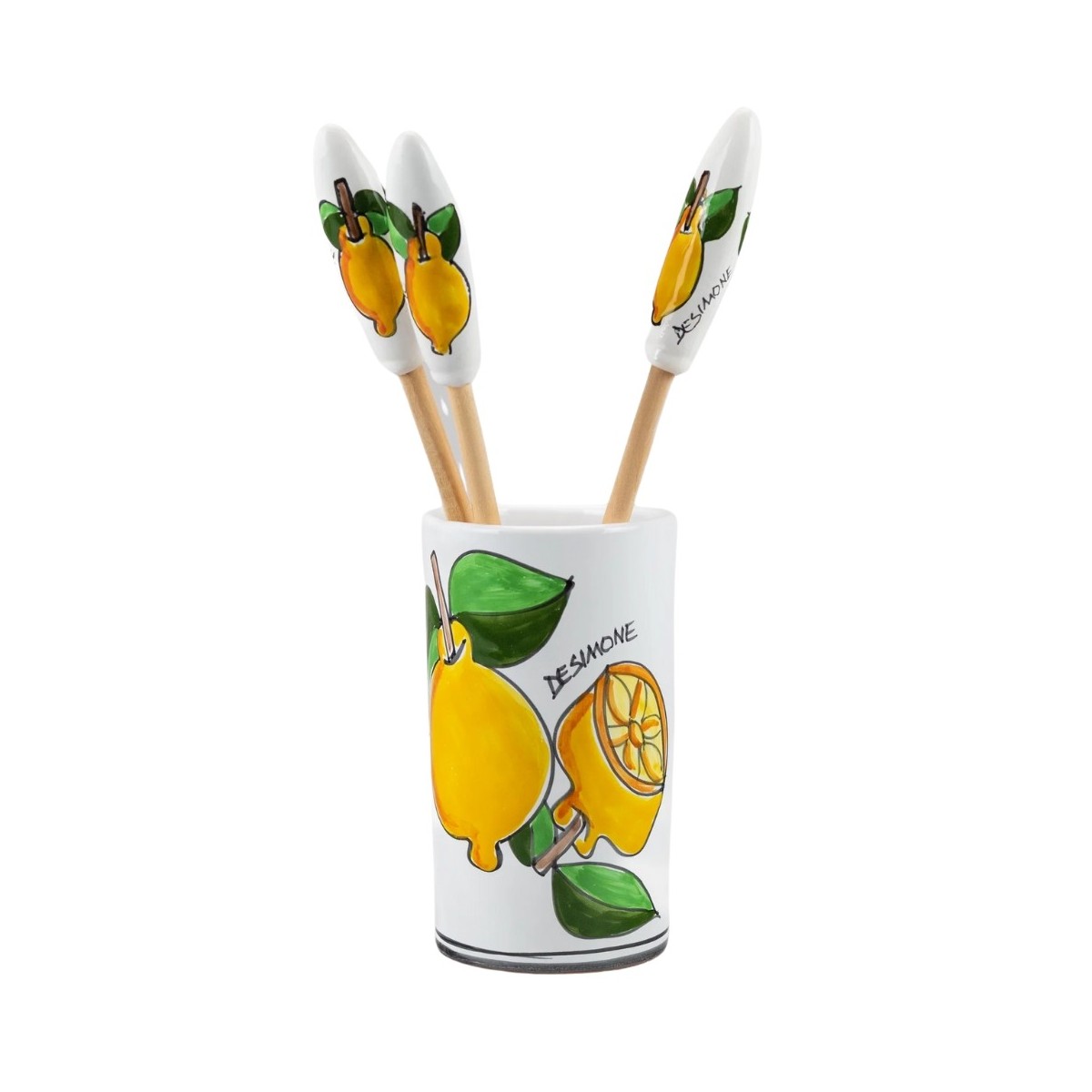 Portabottiglie o portautensili in ceramica decorata a mano Limoni della linea Folk