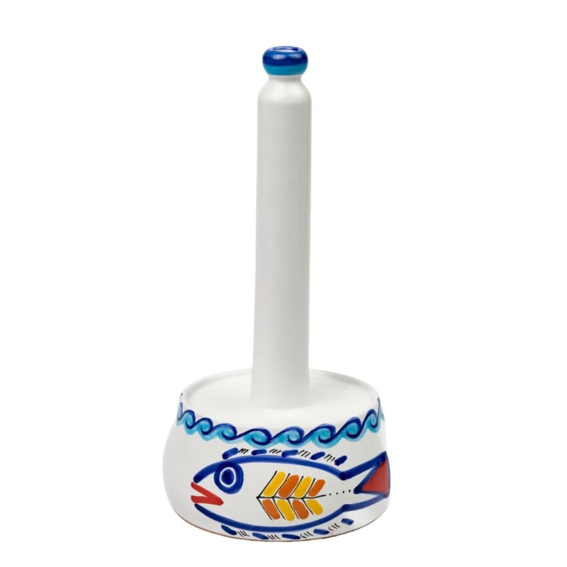 Porta rotolo di carta da appoggio con base decorata a mano con la fantasia Levante della linea Mangiallegro.