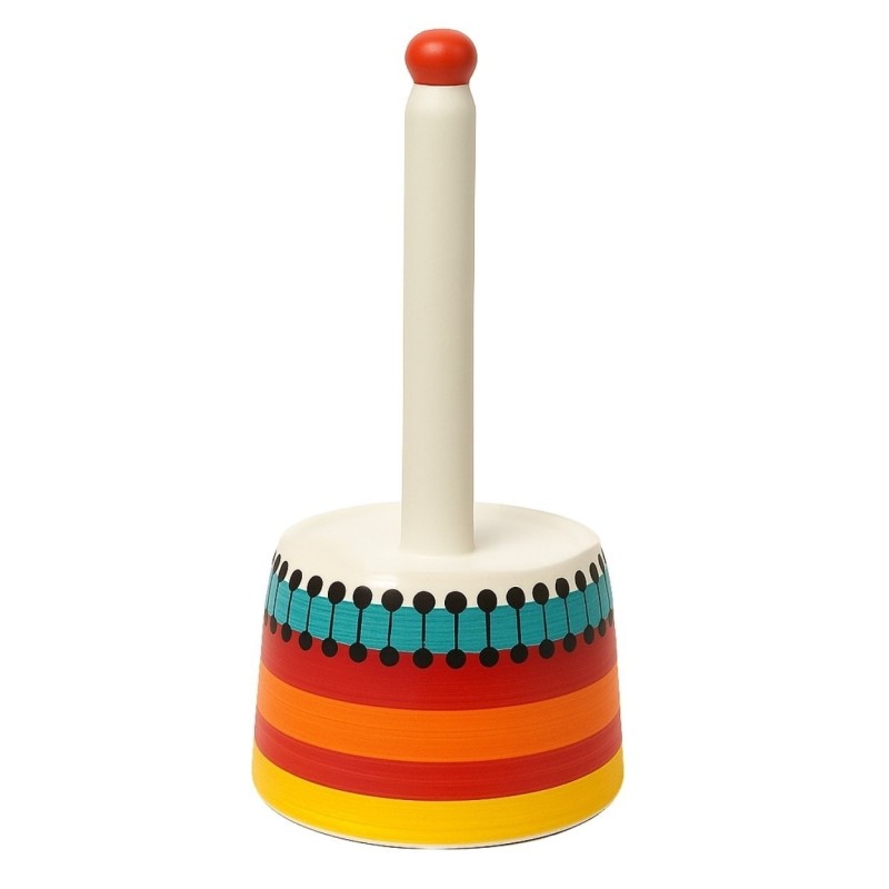 Porta rotolo di carta da appoggio con base decorata a mano con la fantasia Pantelleria della linea Mangiallegro.