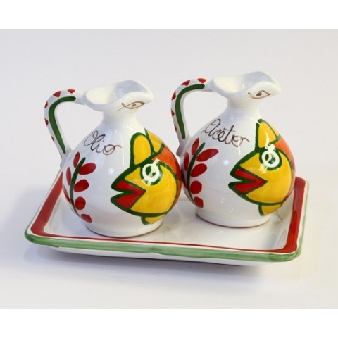 Set olio aceto artigianale in ceramica Panarea Linea Mangiallegro