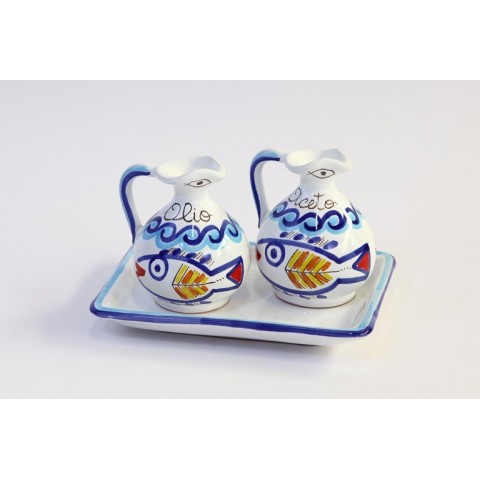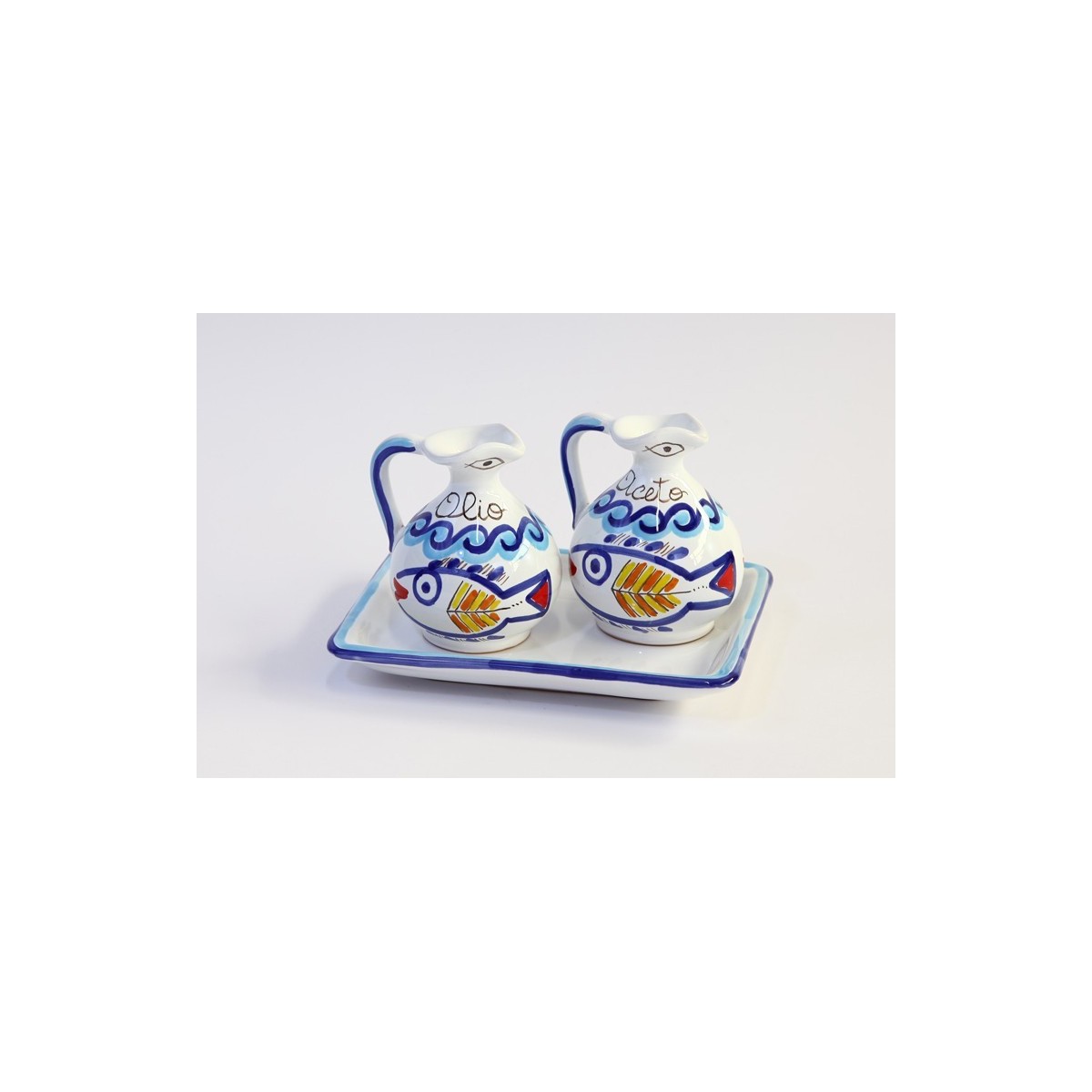 Set olio aceto artigianale in ceramica Levante Linea Mangiallegro