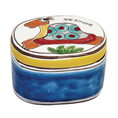 Scatola artigianale a forma ovale realizzata in ceramica e dipinta a mano Tartaruga
