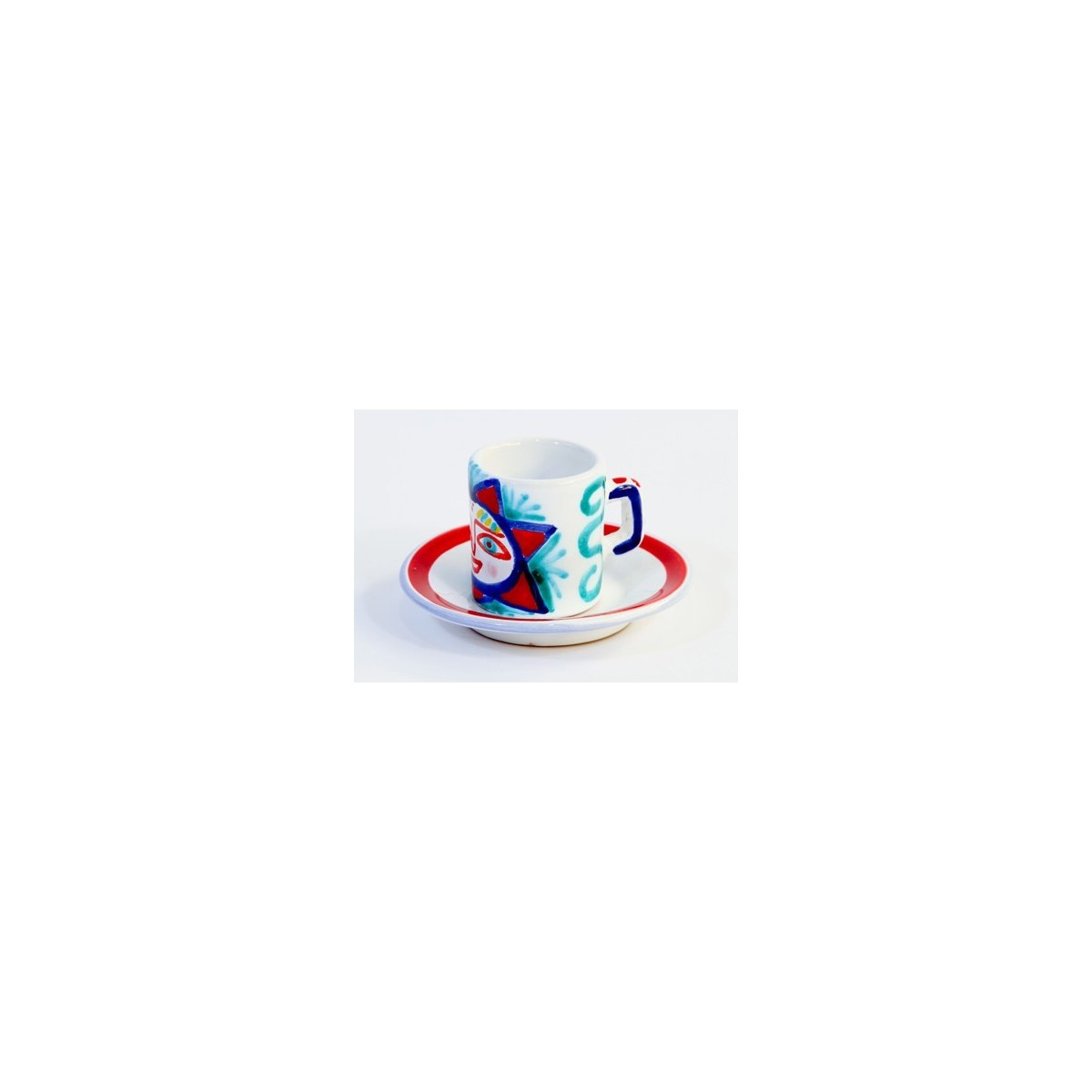 Set tazzina da caffè cilindrica con piattino in ceramica, realizzato e dipinto a mano, della linea Mangiallegro con fantasia Salina.