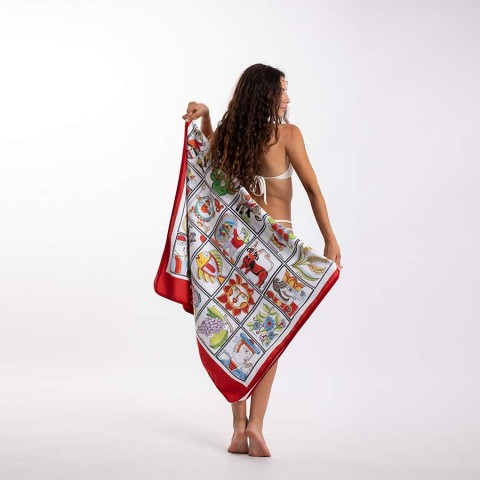 Telo mare in microfibra con fantasia ispirata alle originali piastrelle Ceramiche De Simone. Disponibile in due grammature differenti (leggera - pesante).