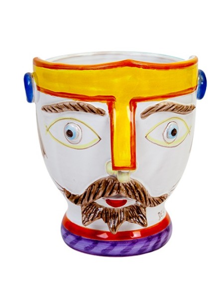 Vaso "Testa di Paladino" in ceramica realizzato artigianalmente e dipinto a mano, disponibile in varie misure.