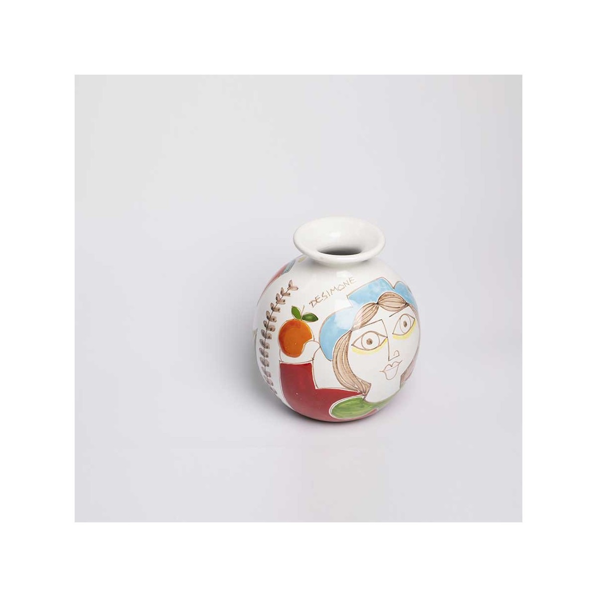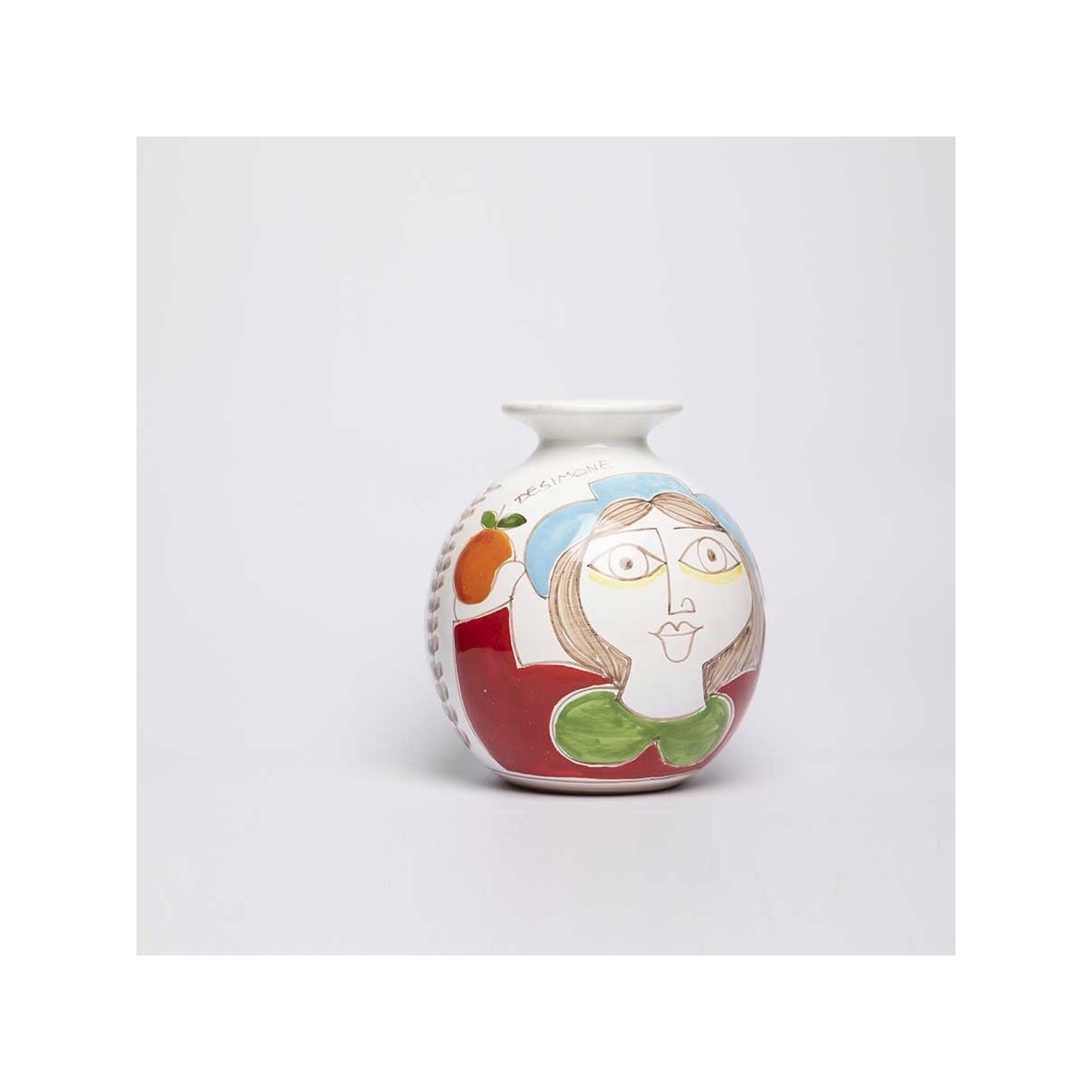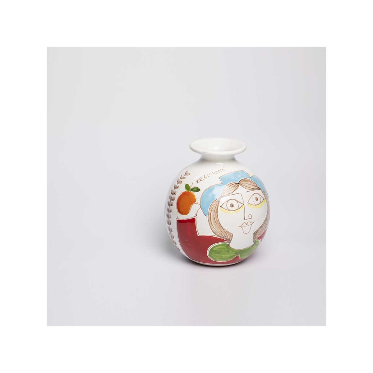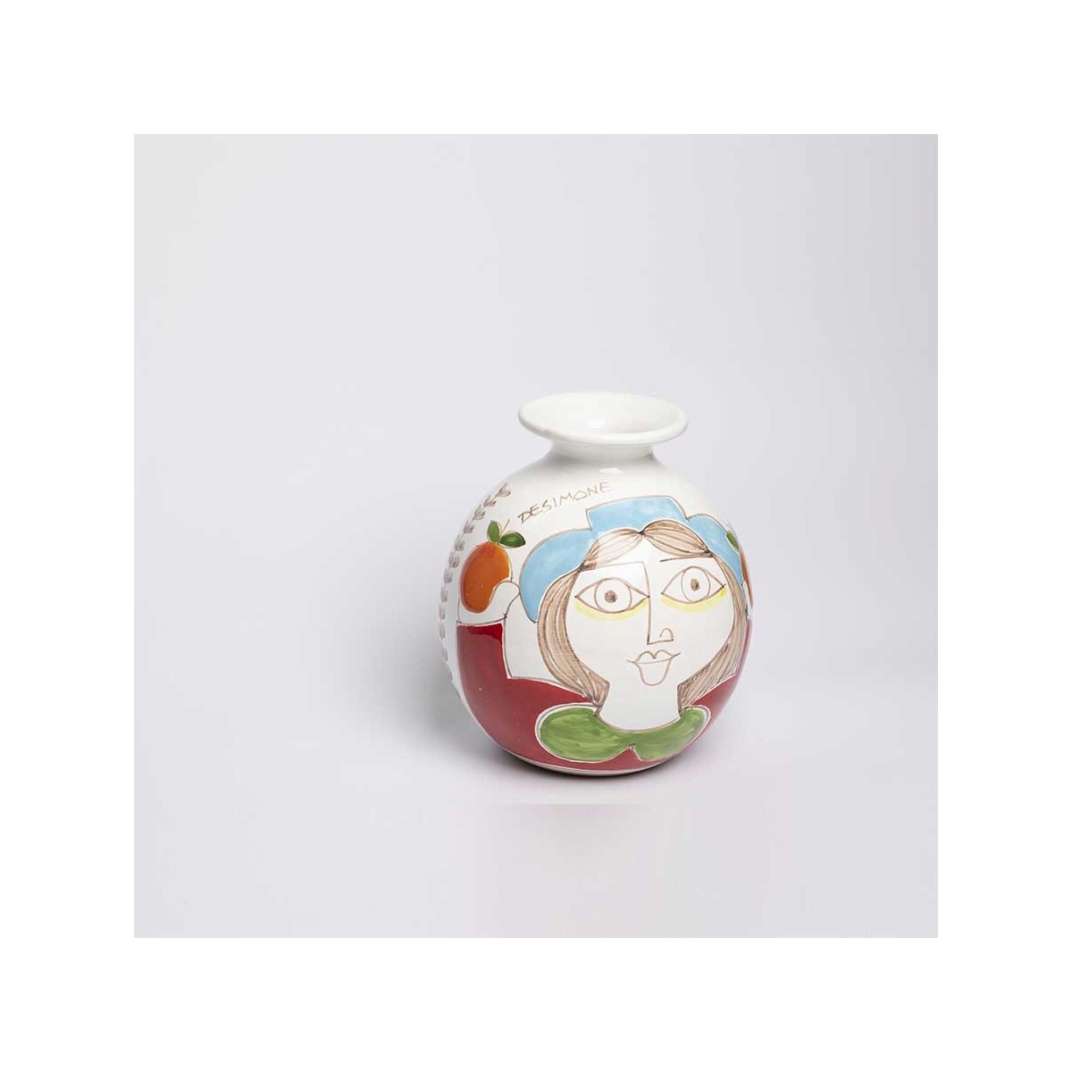 Vaso tondo in ceramica decorato a mano Donna VS507FK-OM della linea Folk
