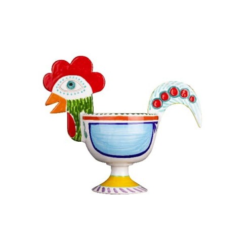 Vaso a forma di gallo realizzato in ceramica e dipinto a mano. Disponibile in tre misure con diametro 8 cm, 12 cm, 18 cm.
